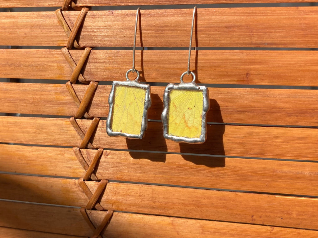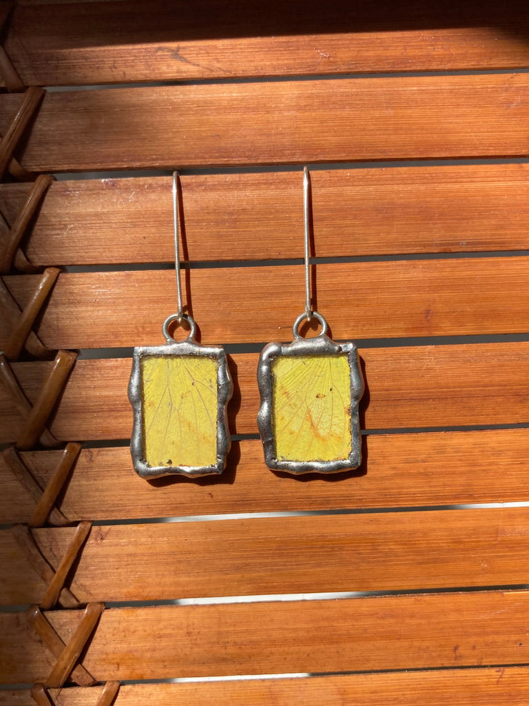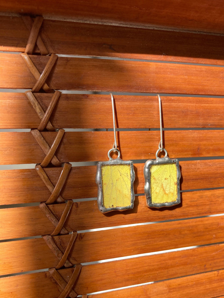 Sulfur butterfly wing dangle earrings on sterling silver ear hooks. Bright! yellow!
